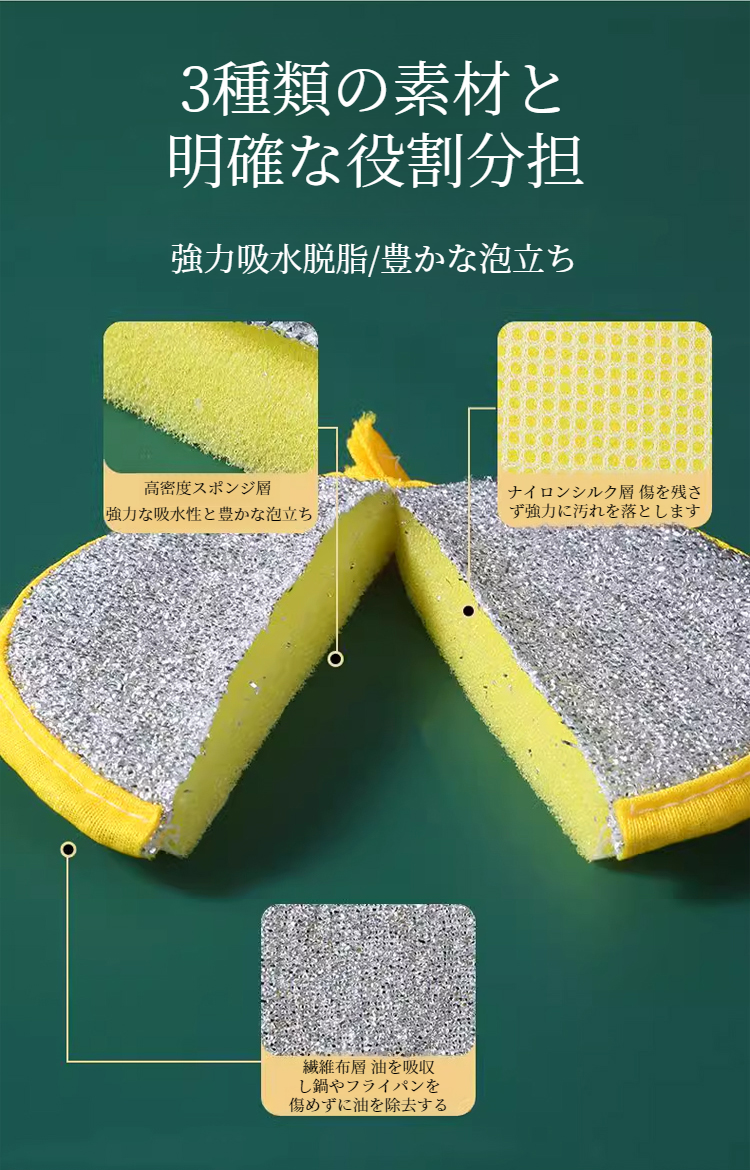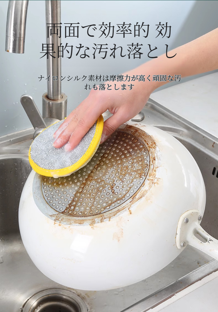 丸型両面食器洗いスポンジ キッチン掃除用ブラシ 吸水スポンジワイプ 食器洗いクロス 両面ふきん